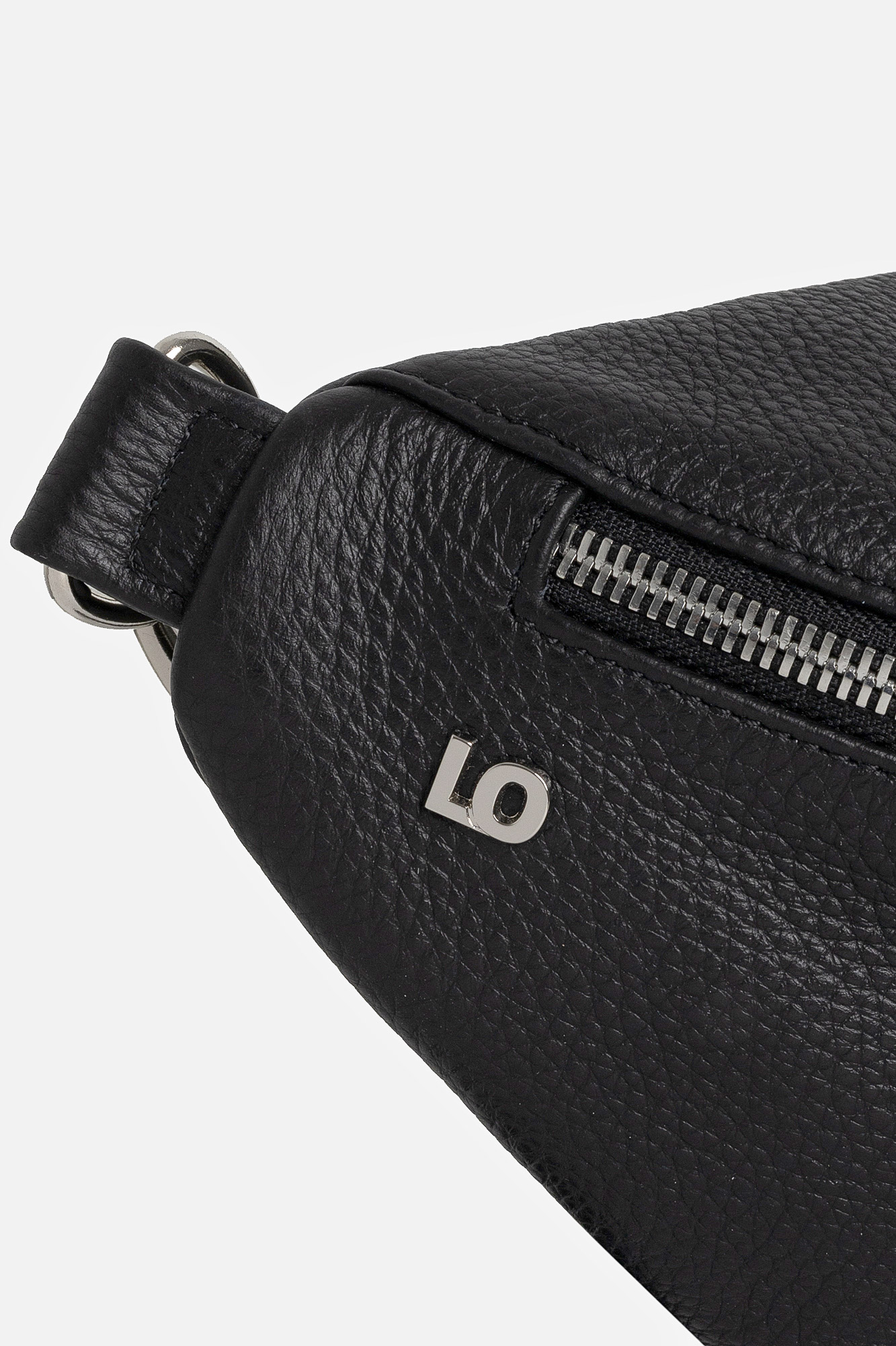 Borseta OTILIA este realizată din piele naturală texturată neagră, este căptușită, are buzunar interior, are baretă de umăr reglabilă & detașabilă, aceasta prezintă două compartimente distincte care se închid cu fermoare metalice argintii, însă, la cerere, se poate realiza și cu accesorii aurii.
