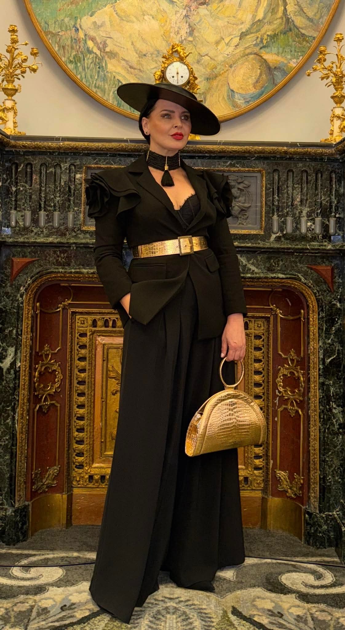 Geanta FANY este realizată din piele naturală aurie cu presaj croco, este o geantă elegantă de mână, are buzunar interior, este parte din colecția SMOKED OLIVES și a fost lansată în cadrul LOS ANGELES FASHION WEEK, primăvară-vară 2020.