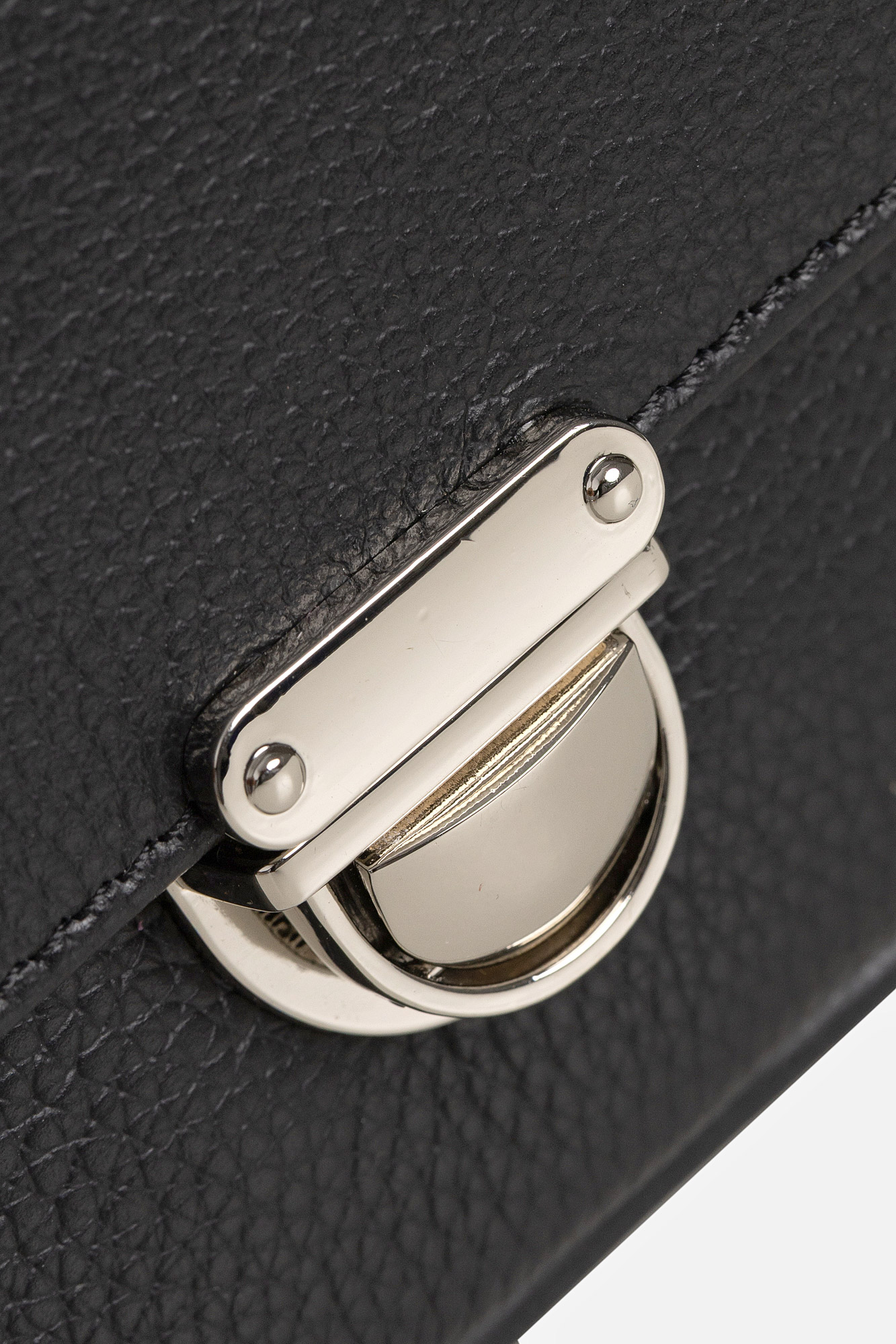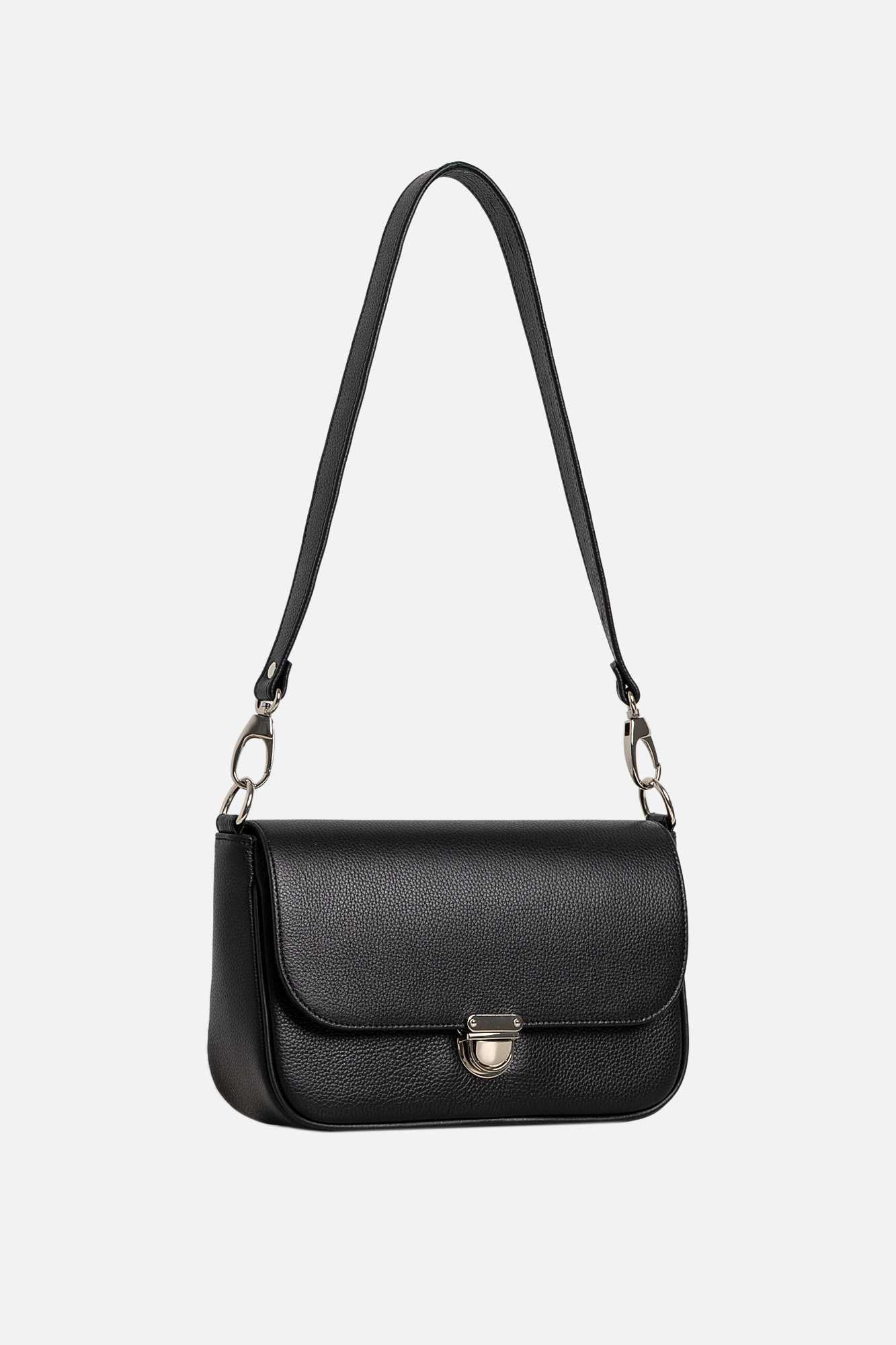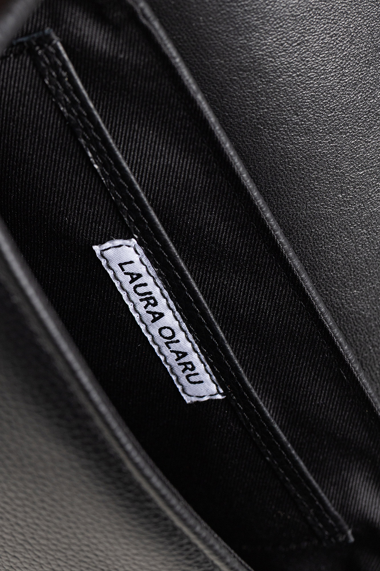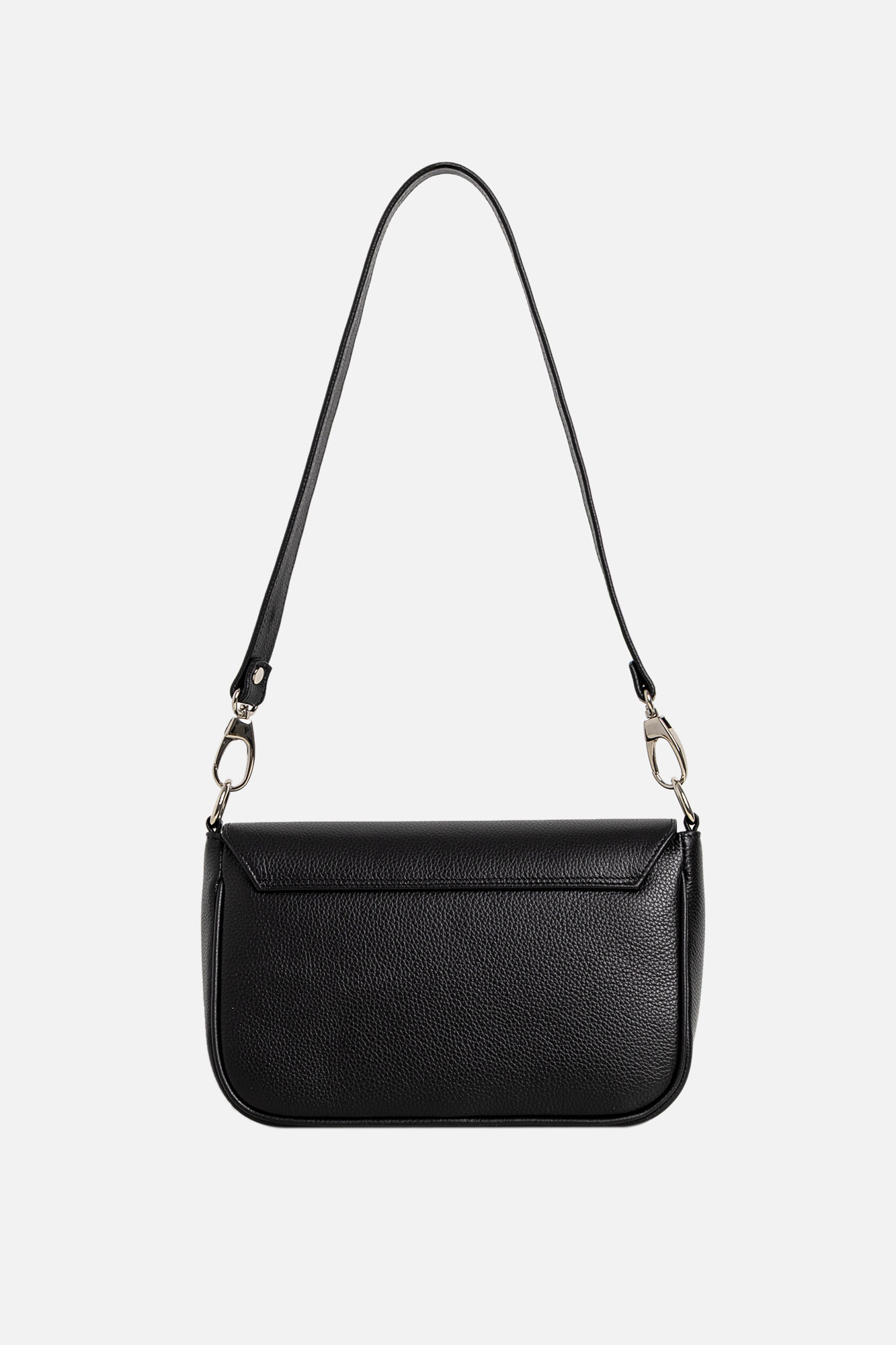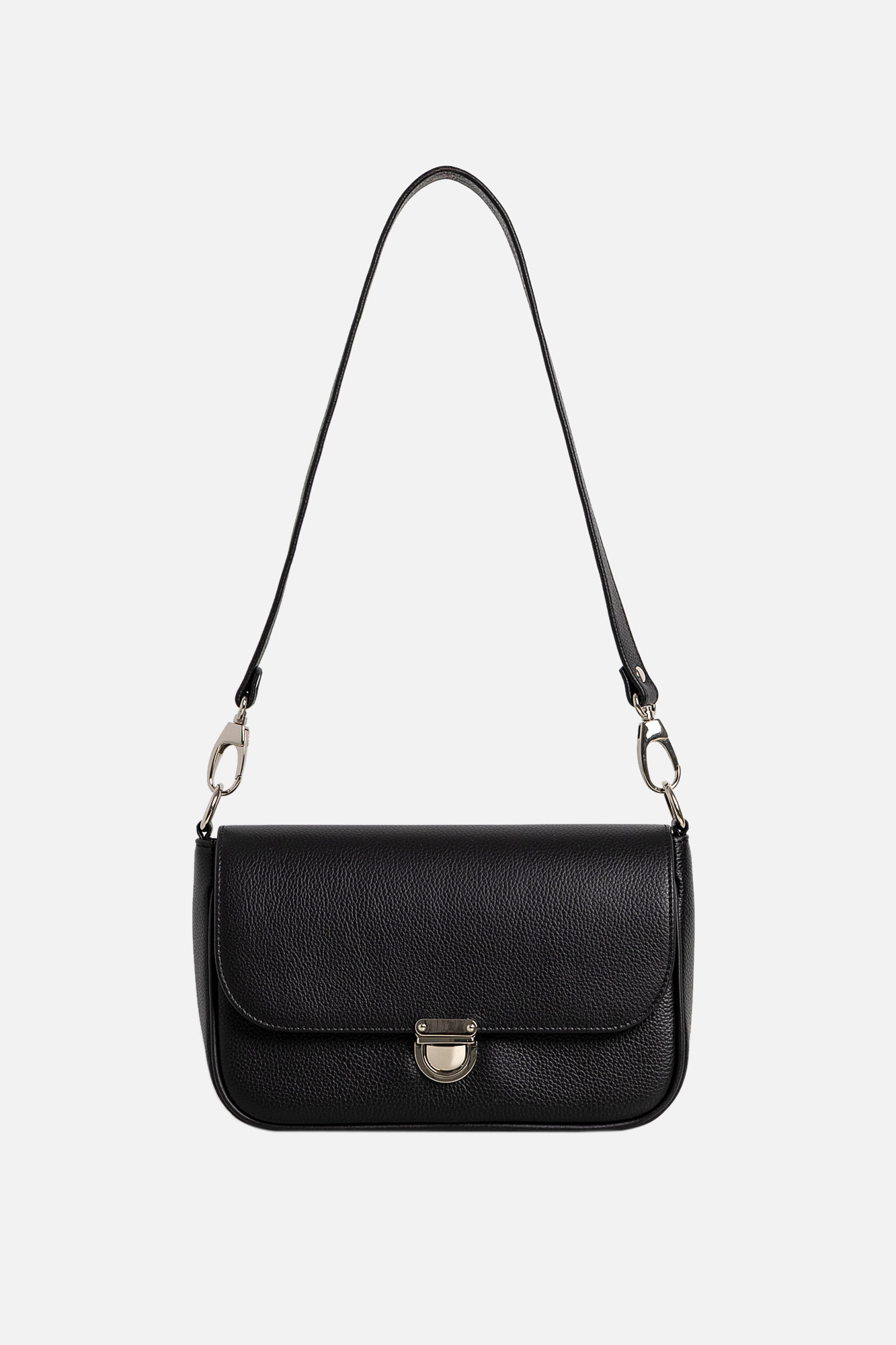 Geanta LUMINIȚA este realizată din piele naturală texturată neagră.