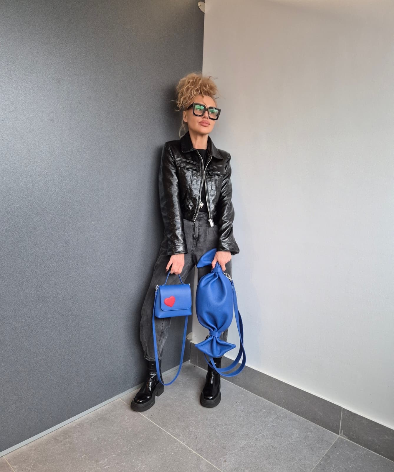 Geanta MINI LOVE este realizată din piele naturală texturată albastră, are buzunar interior, mâner scurt și baretă lungă detașabilă. Pe capac e inima mea, pentru voi.