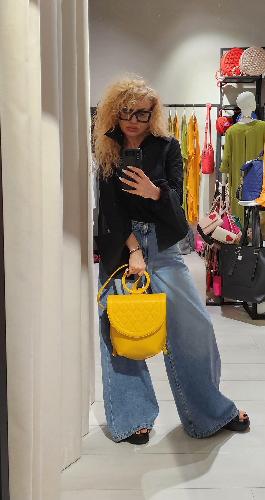 Geanta rucsac LUNA este realizată din piele naturală netedă galben-muștar, este parte din colecția SMOKED OLIVES, lansată in cadrul Los Angeles Fashion Week, primăvară-vară 2020.