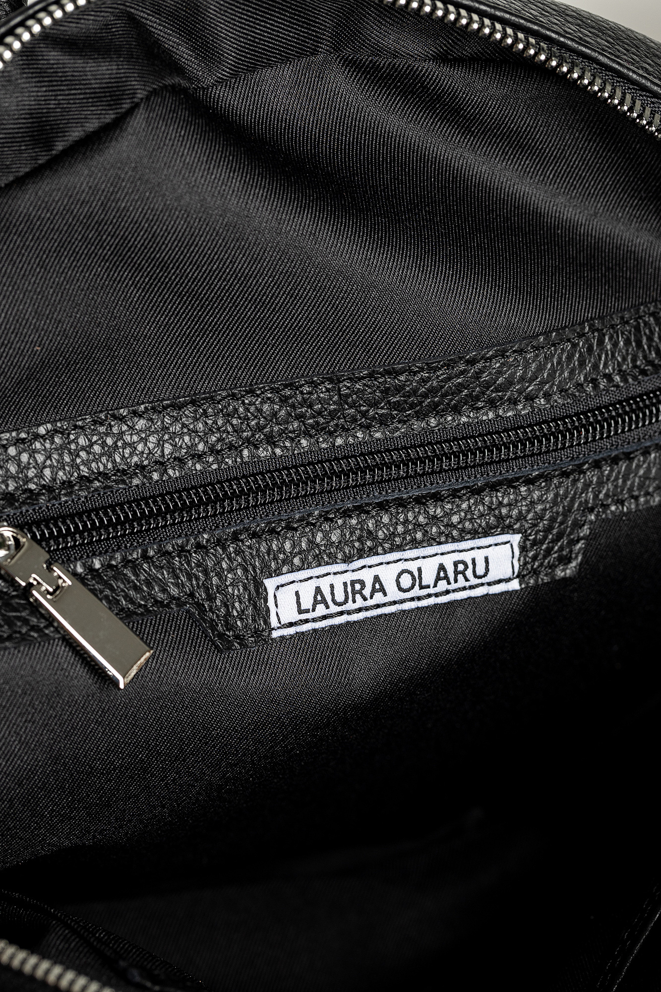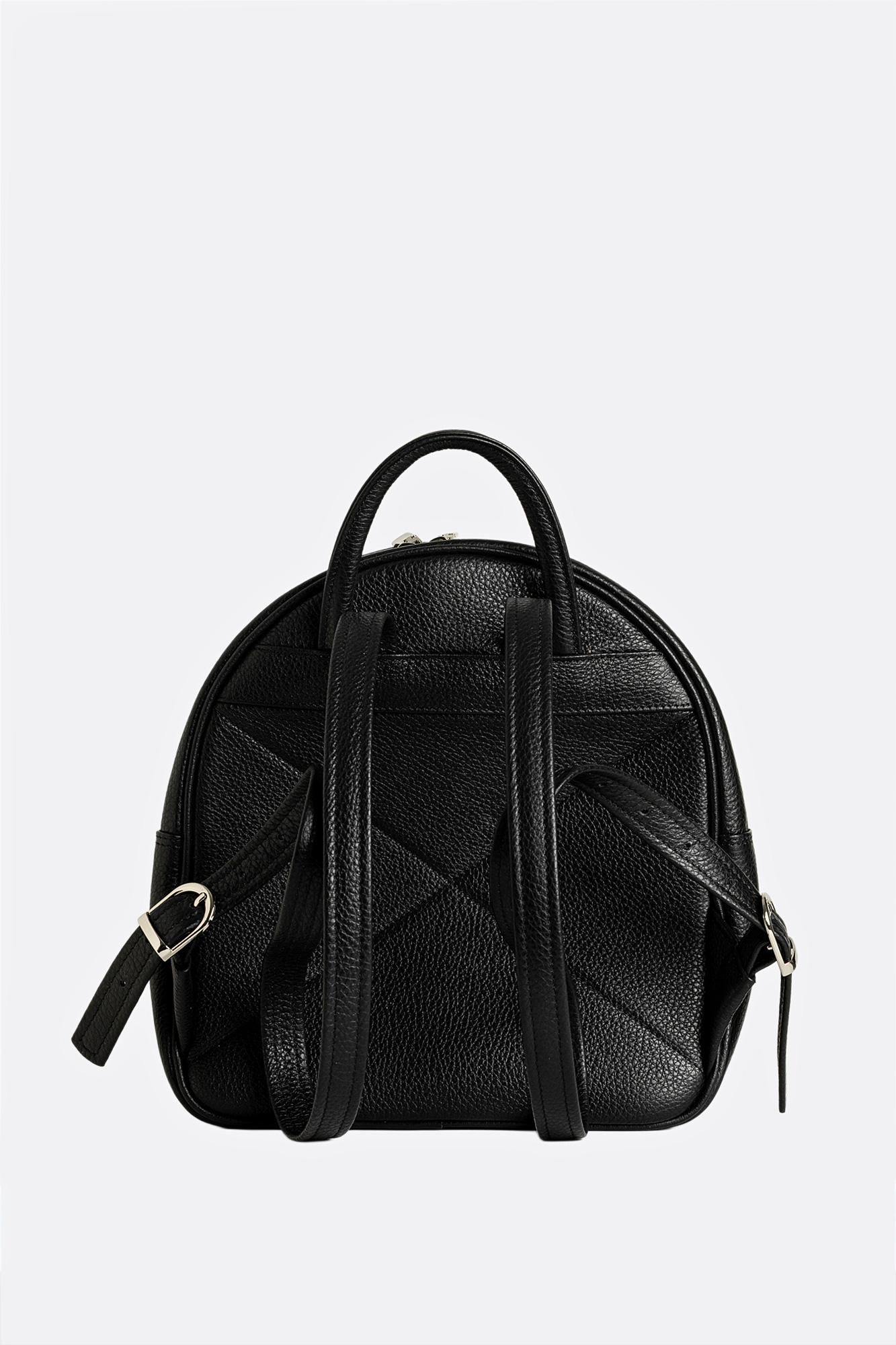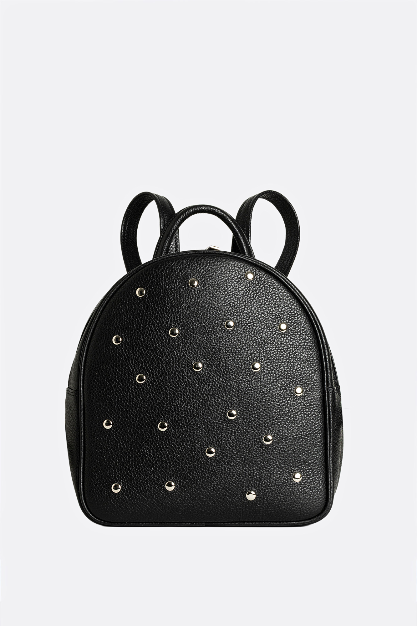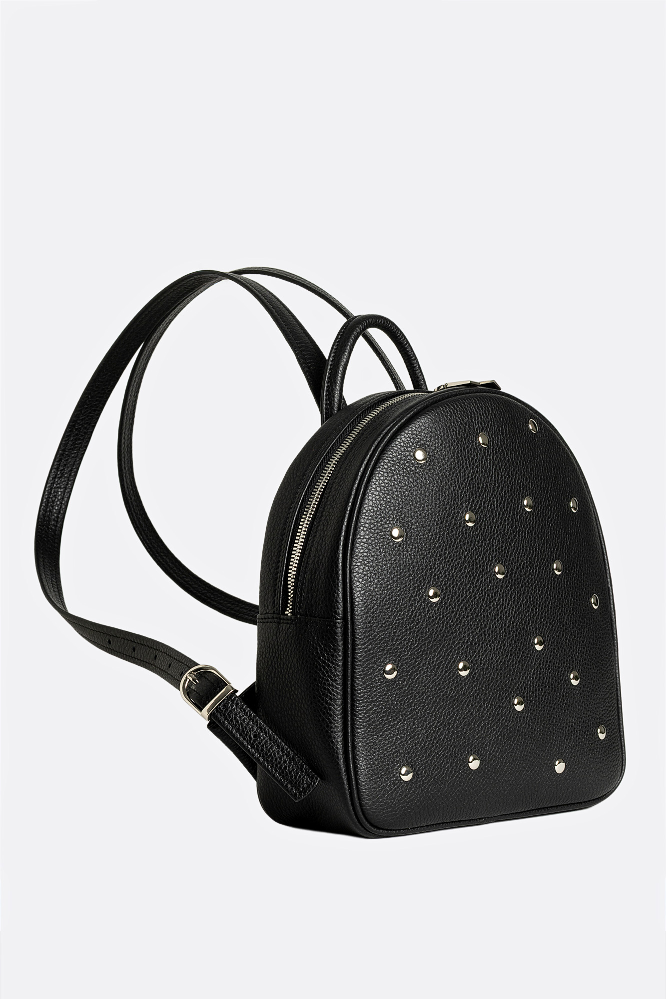 Rucsacul NOIRE EDGE este confecționat din piele naturală texturată neagră, decorat cu capse metalice, pe față.